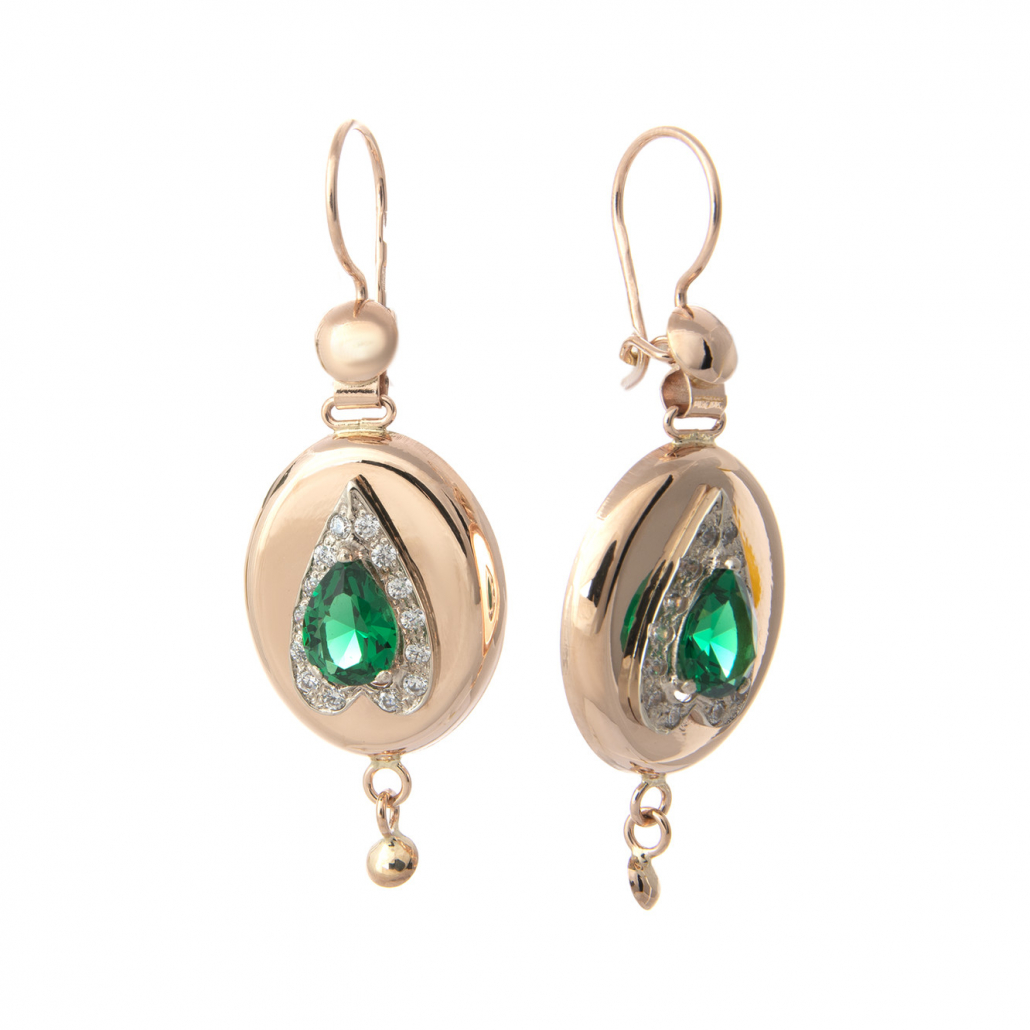 - Серьги-самовары с фианитом из золота