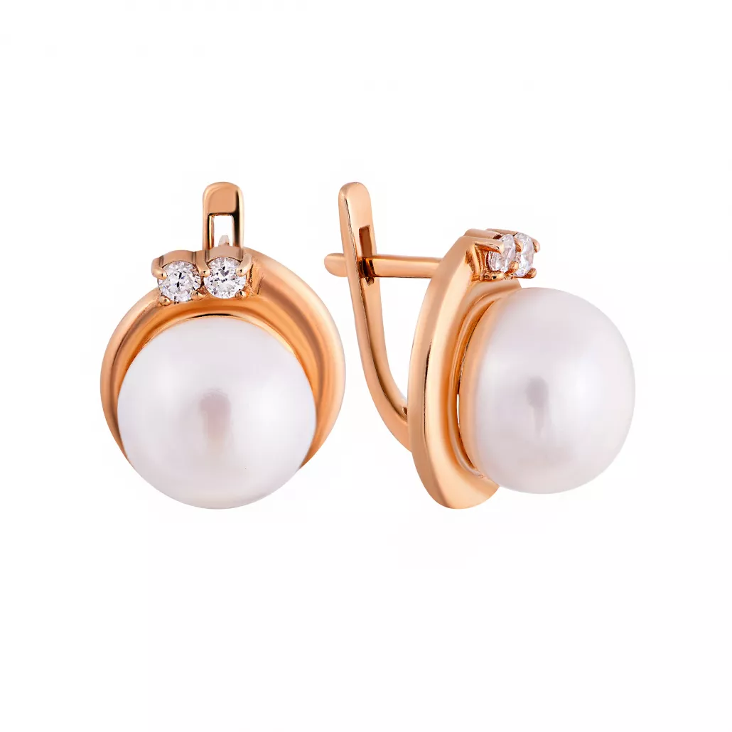 Золотые серьги 585, женские, с жемчугом и фианитом