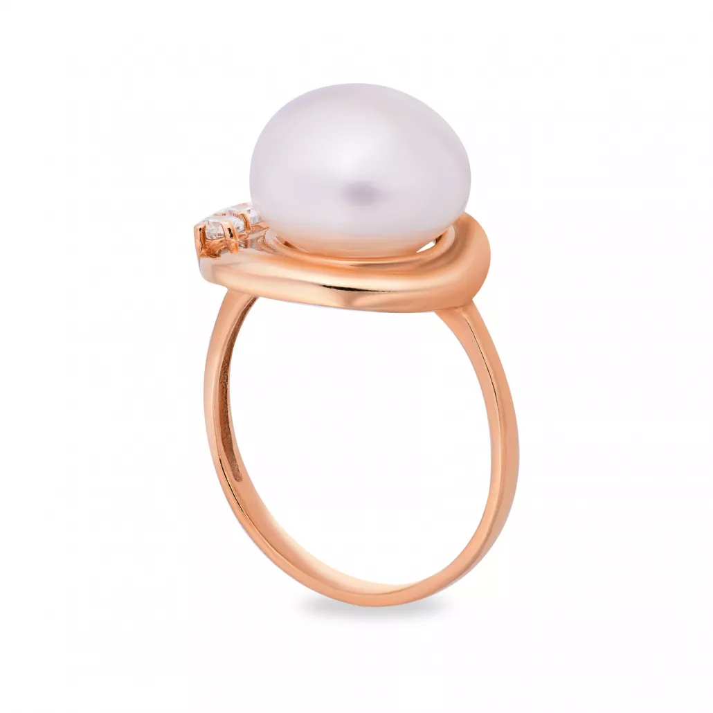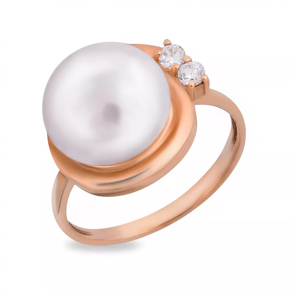 Золотое кольцо 585, женское, с жемчугом и фианитом, размер 18 Артикул: 31312A1
