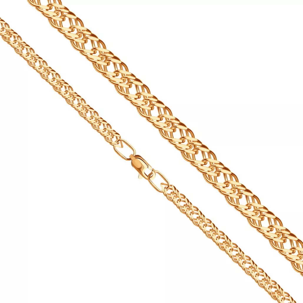 - Золотая цепочка 585 на шею, плетение тройной ромб пустотелый, длина 45 см, цвет красное золото
