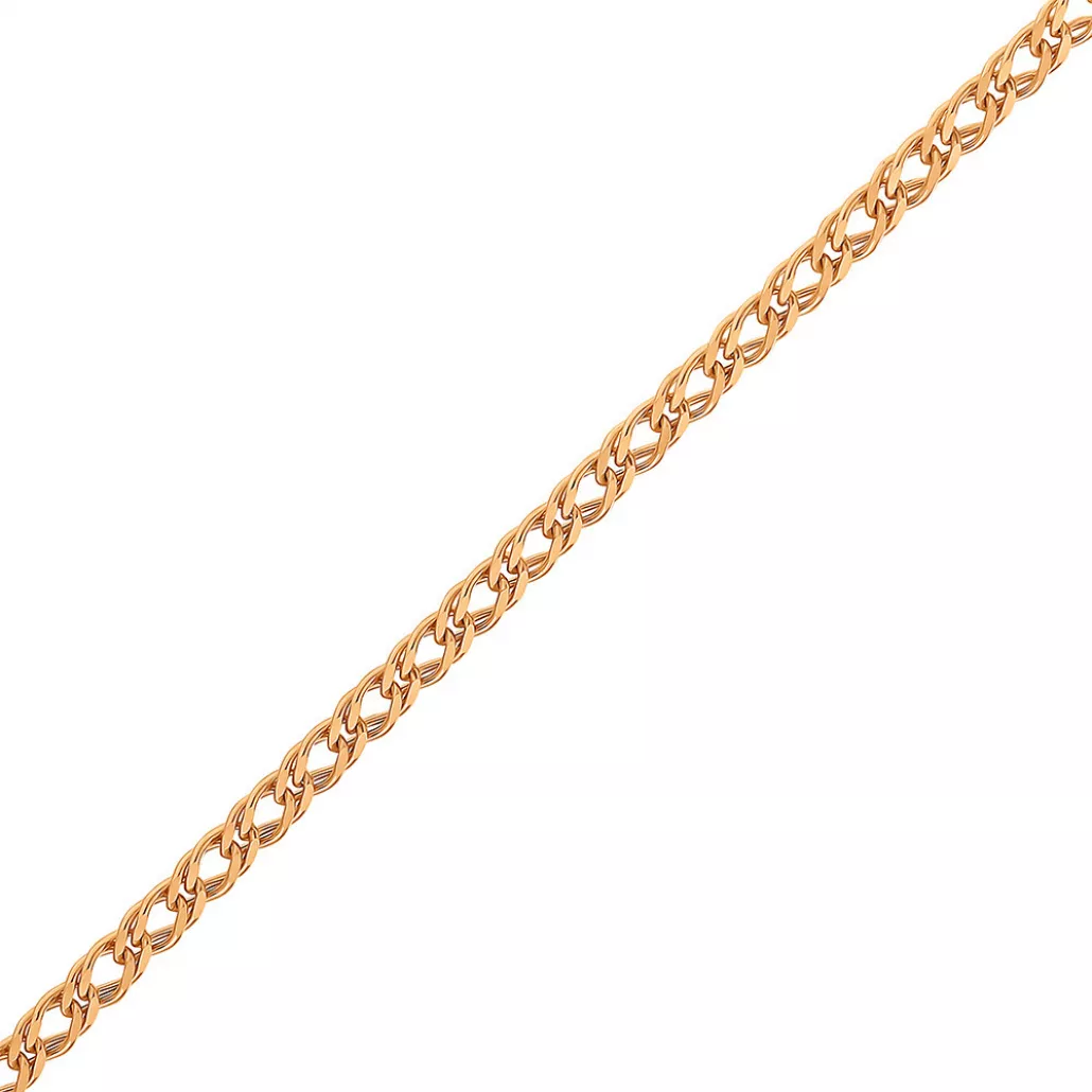 - Золотая цепочка 585 на шею, плетение двойной ромб, длина 40 см, цвет красное золото