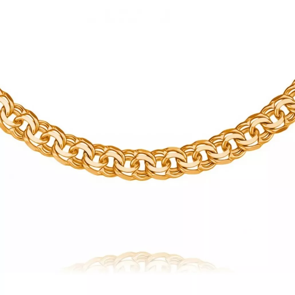 Золотая цепочка 585 на шею, плетение бисмарк, длина 60 см, цвет красное золото Артикул: Бисмарк Ц120