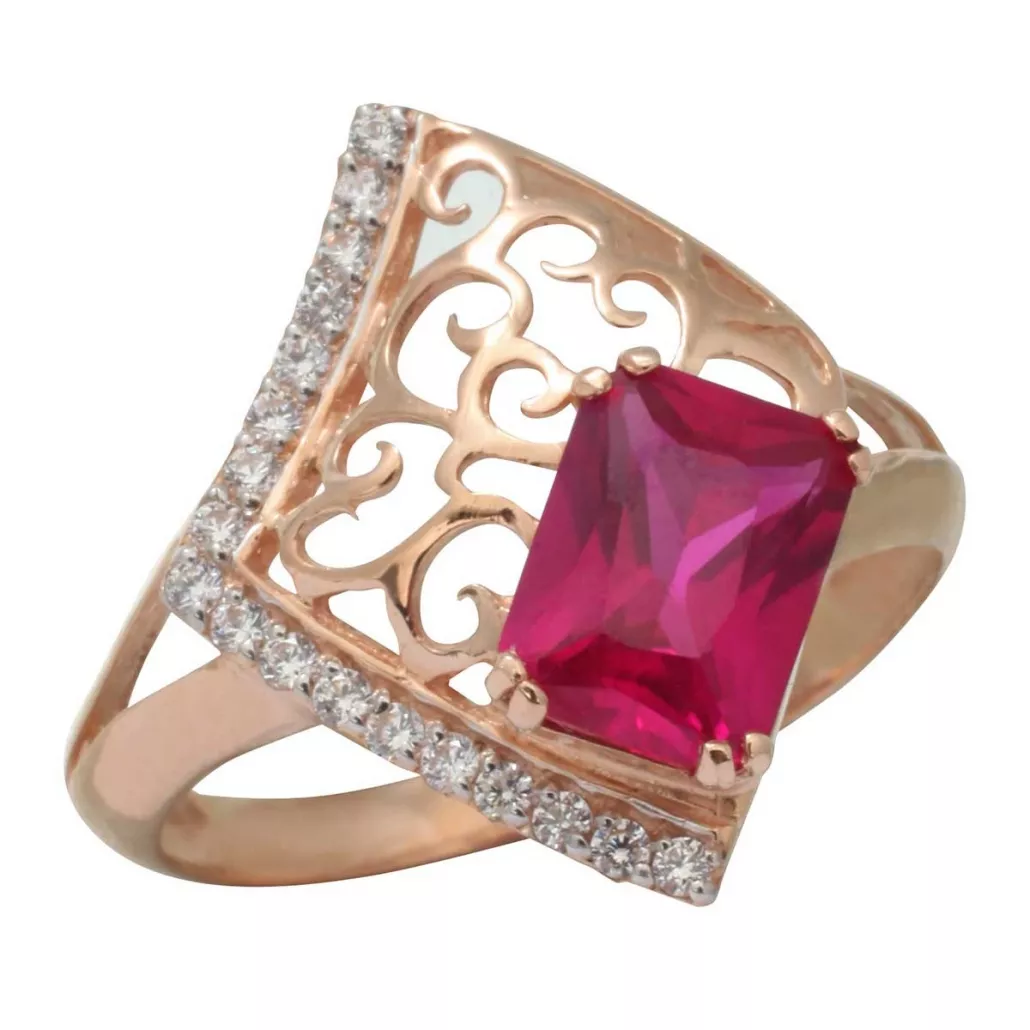- Золотое кольцо 585, женское, с фианитом и корундом, размер 18.5