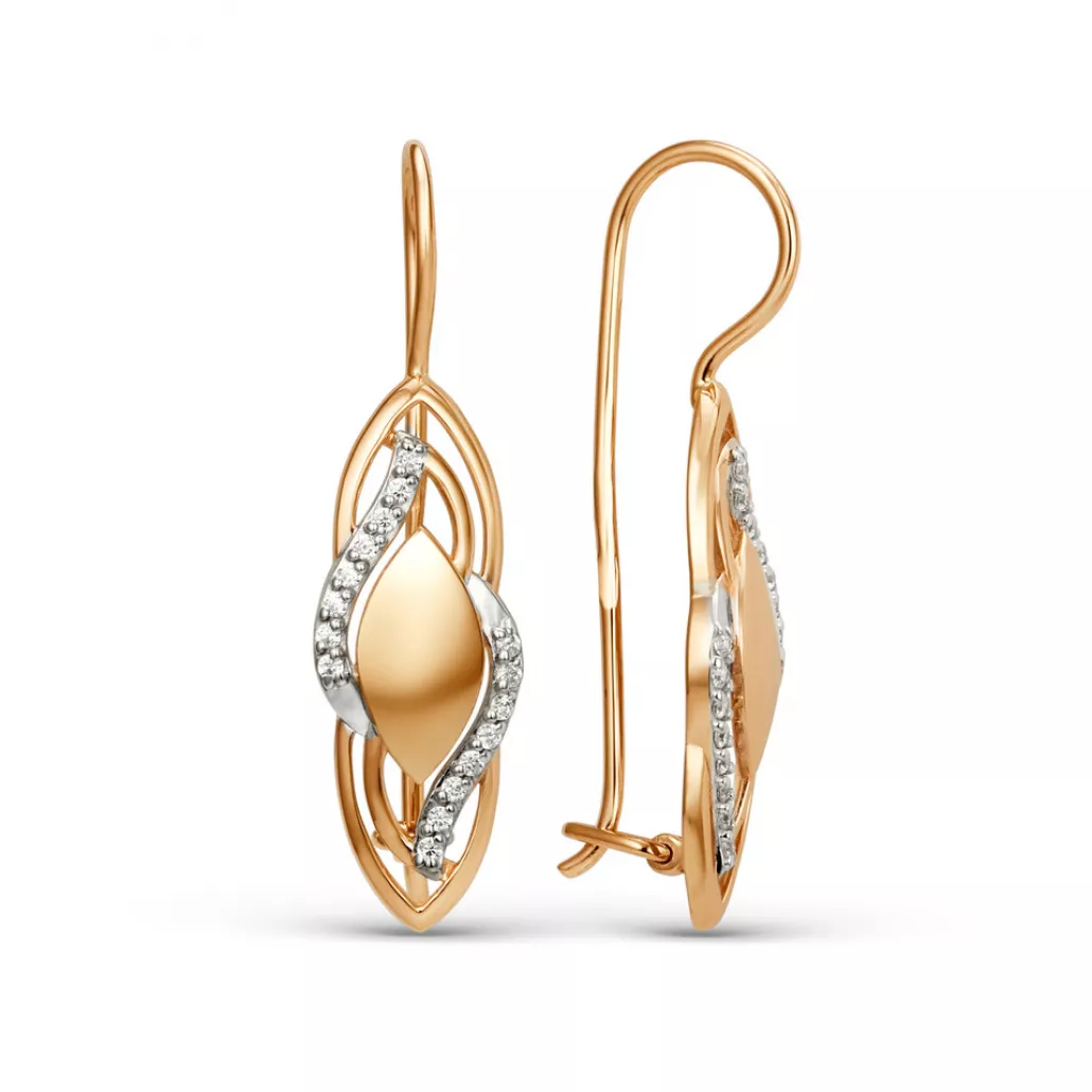 - Золотые серьги 585, женские, с фианитом