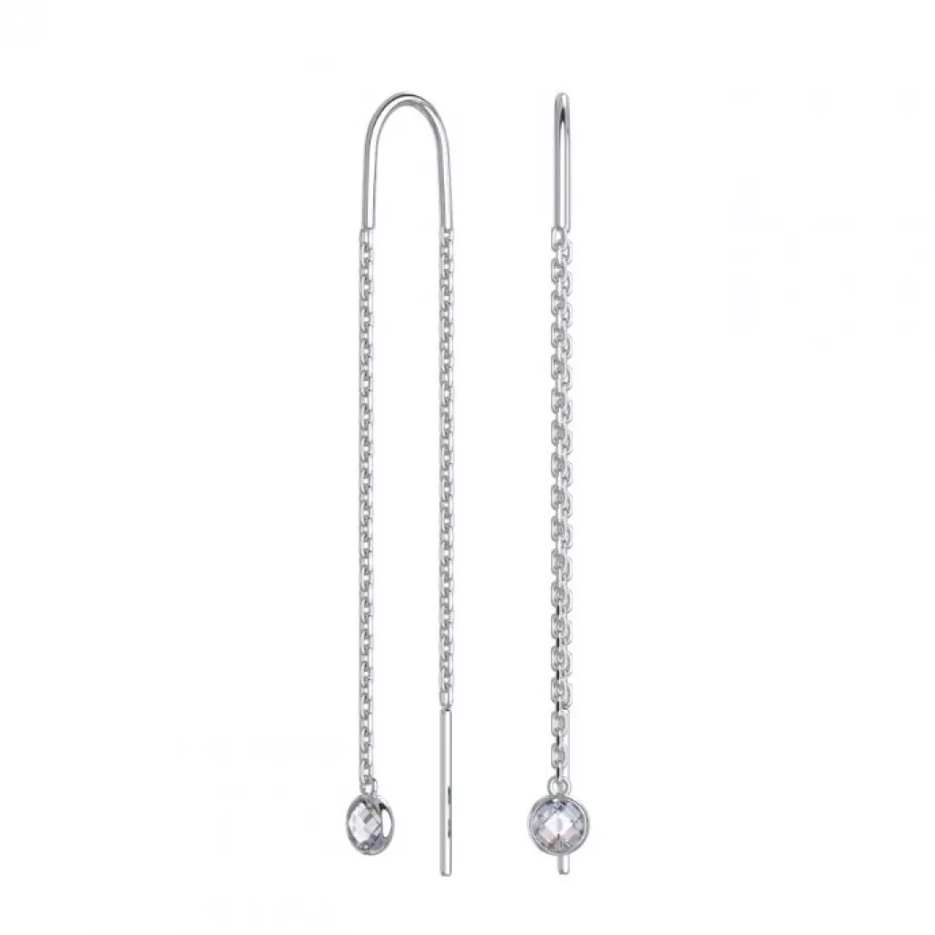 Серьги-продевки с фианитом из серебра Артикул: 0211718-00775