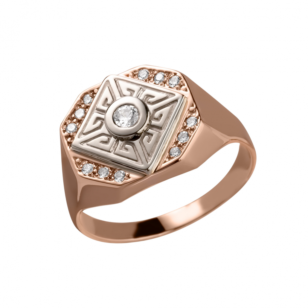 Кольцо-печатка с фианитом из золота Артикул: 25017
