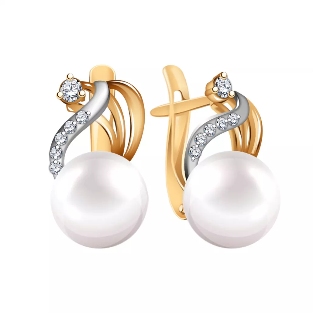 Серьги с жемчугом и фианитом из золота Артикул: 2741ж