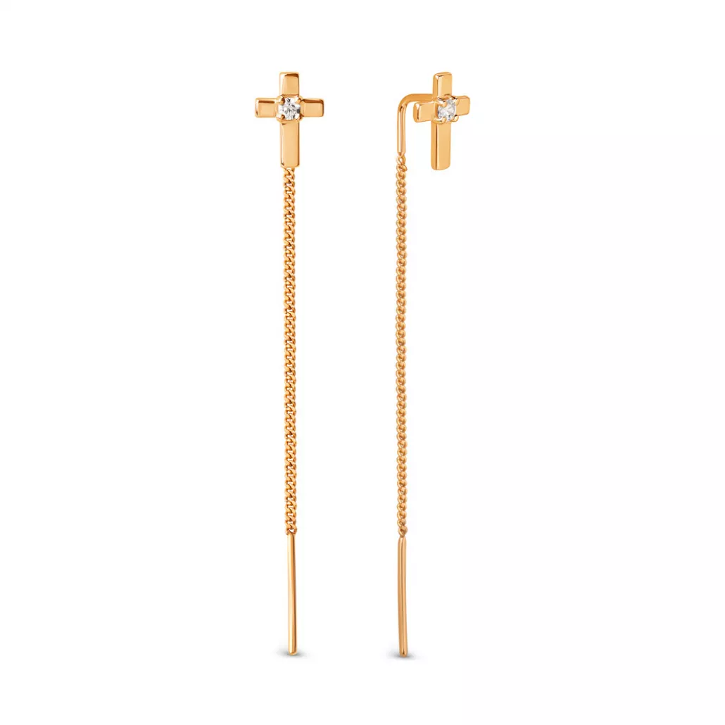 Серьги-продевки с фианитом из золота