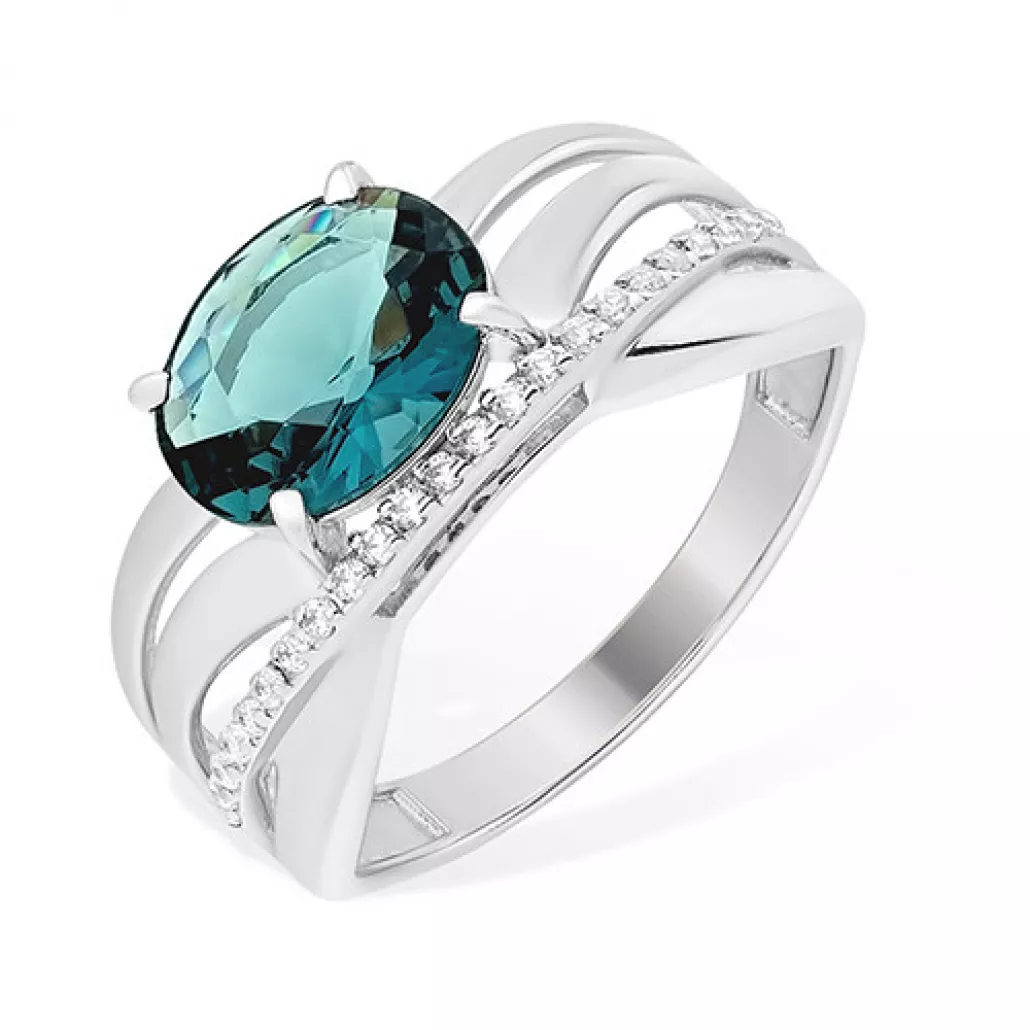 - Кольцо с топазом и фианитом из серебра