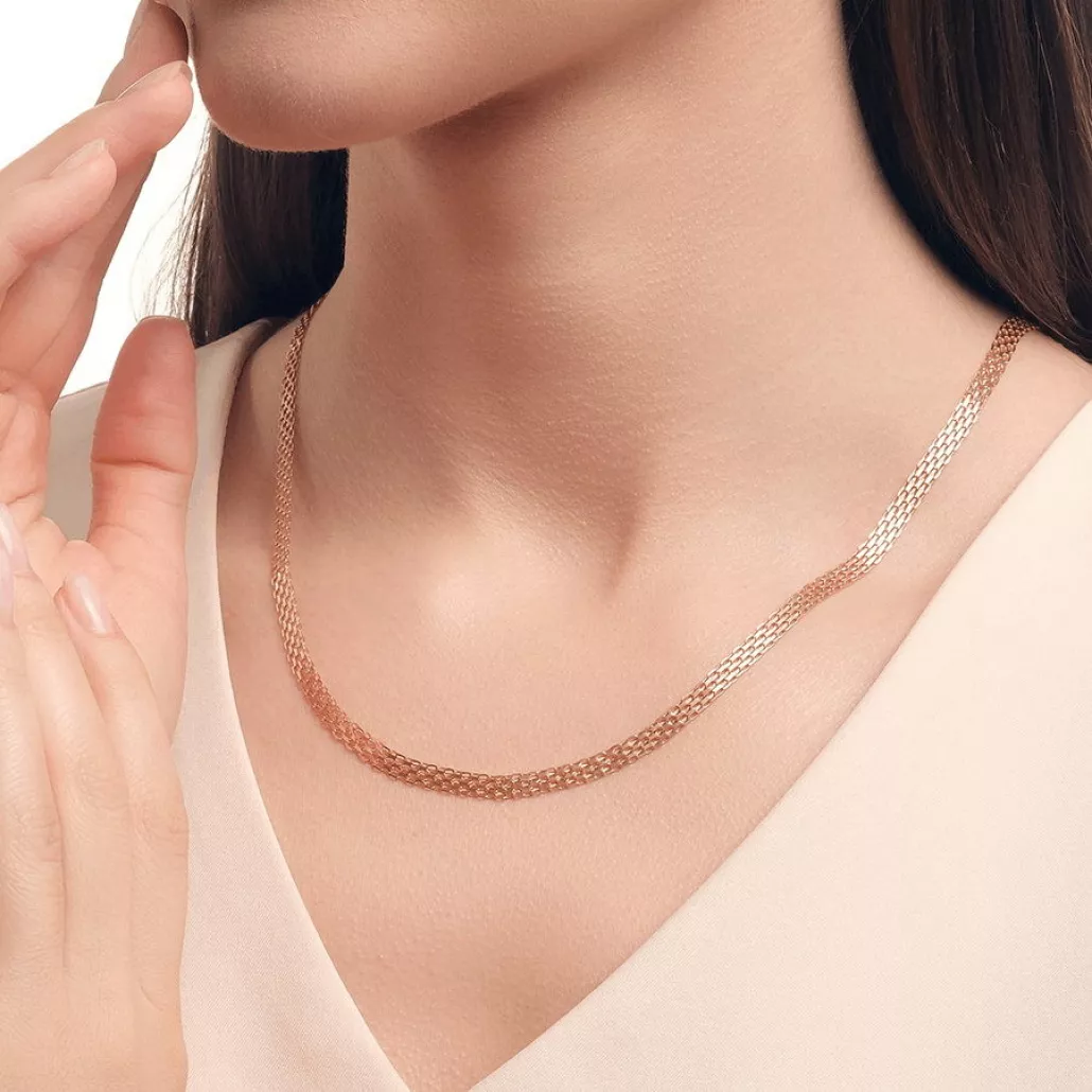 Золотая цепочка 585 на шею, длина 45 см, цвет красное золото