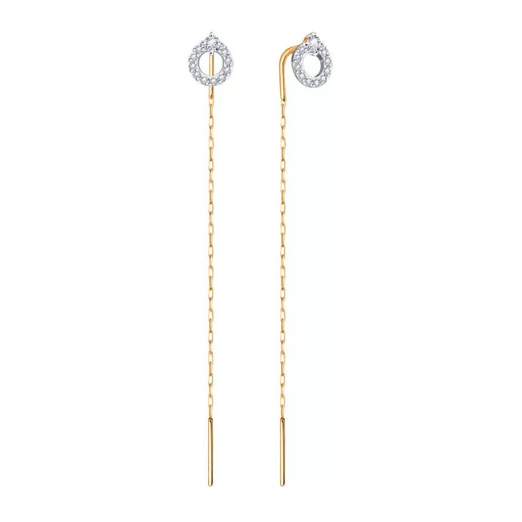 - Золотые серьги 585, женские, с фианитом