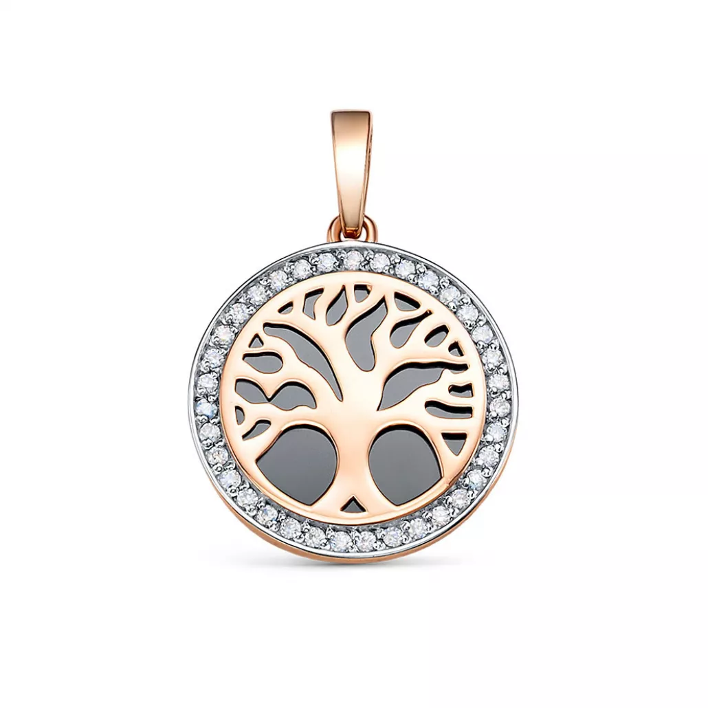 Золотая подвеска 585, женская, с ониксом и фианитом