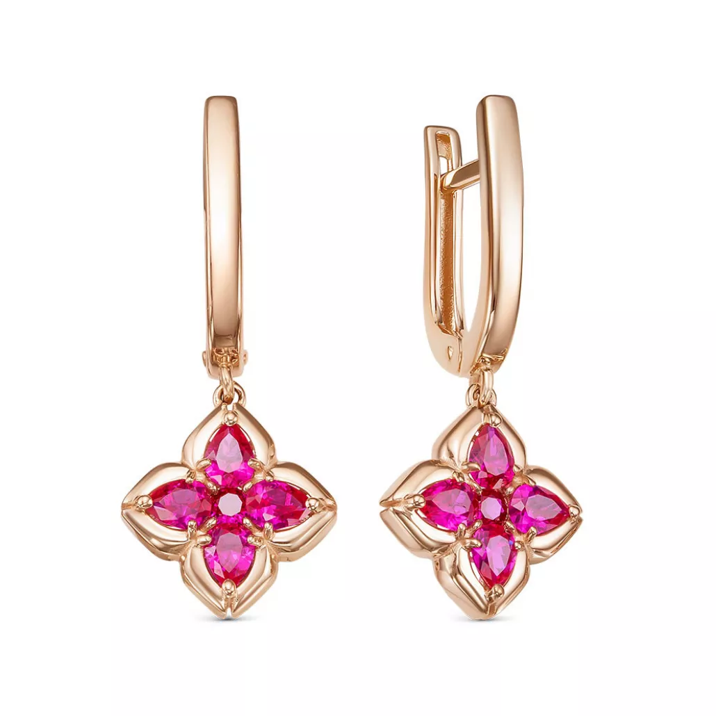 Золотые серьги 585, женские, с рубином