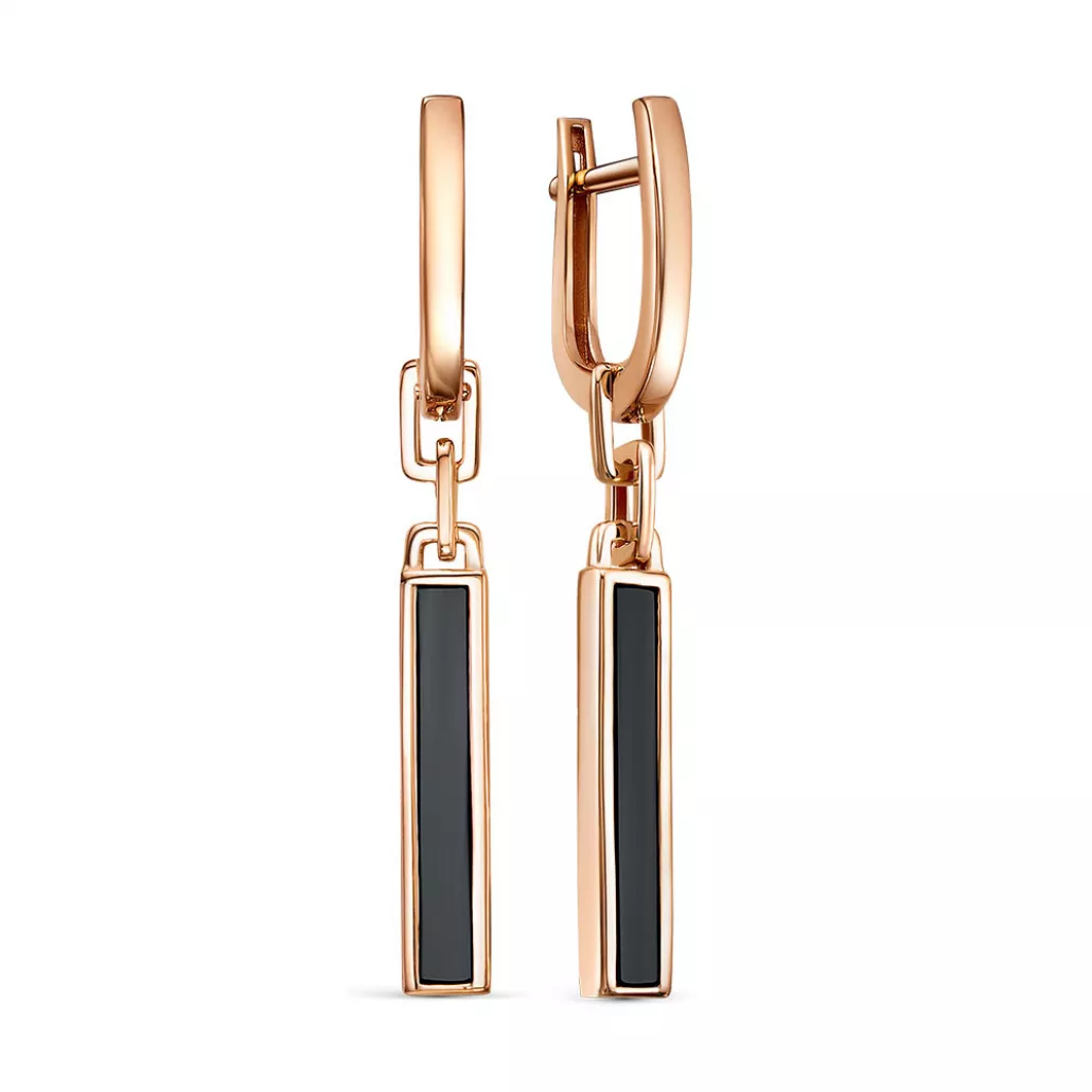 Золотые серьги 585, женские, с ониксом