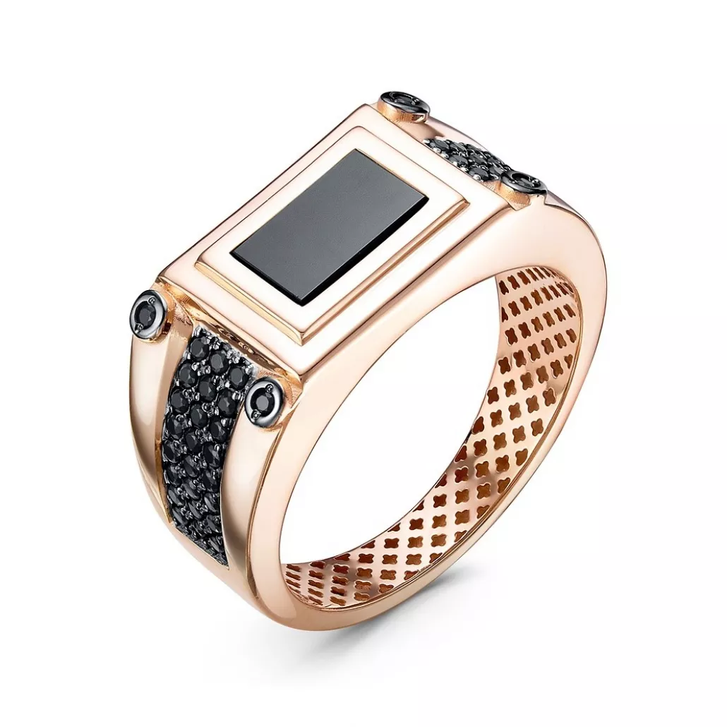 Кольцо-печатка с фианитом и ониксом из золота