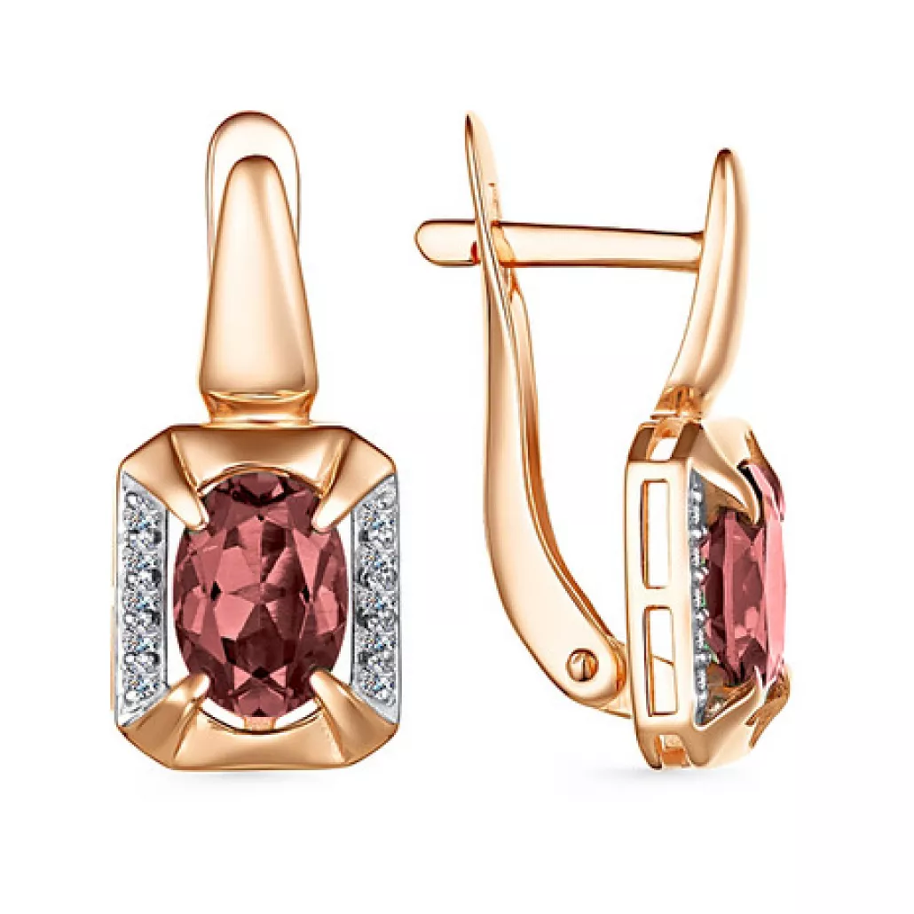- Золотые серьги 585, женские, с гранатом и фианитом