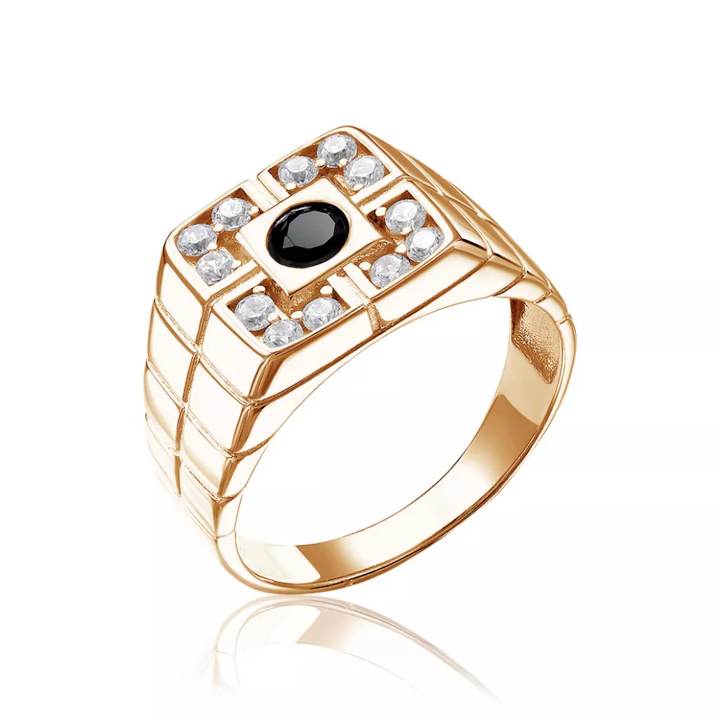 Кольцо-печатка с фианитом из золота