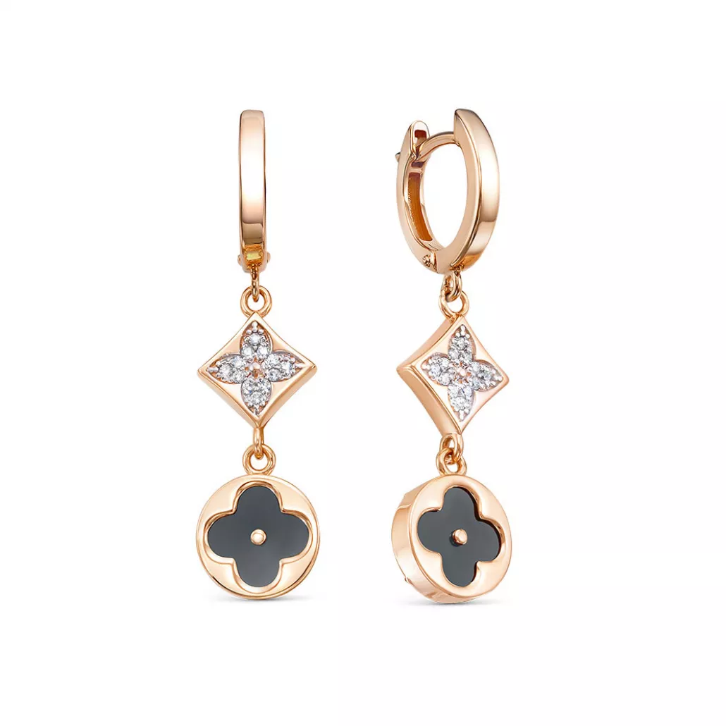 Золотые серьги 585, женские, с фианитом и ониксом Артикул: 120440