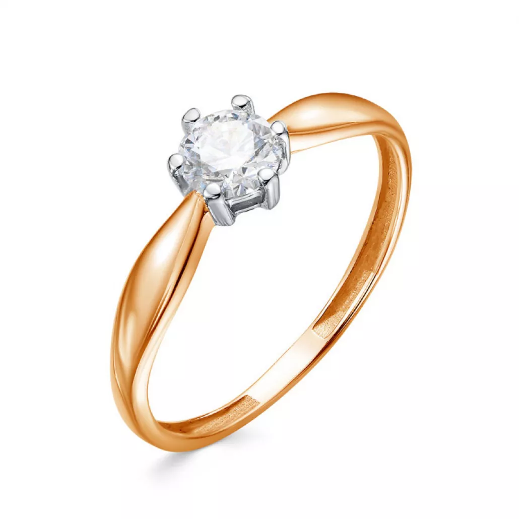 Золотое кольцо 585, женское, с бриллиантом, размер 18.5
