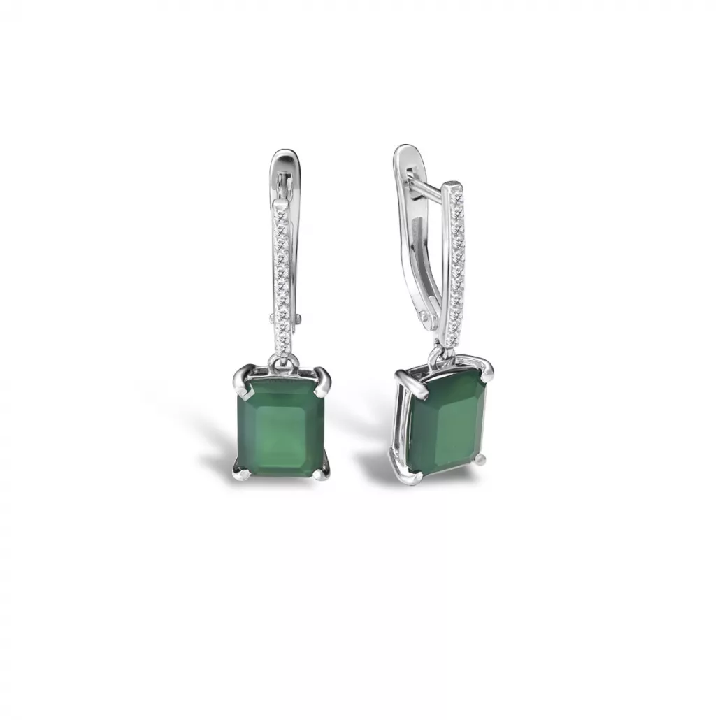 Серебряные серьги 925, женские, с лунным камнем и фианитом