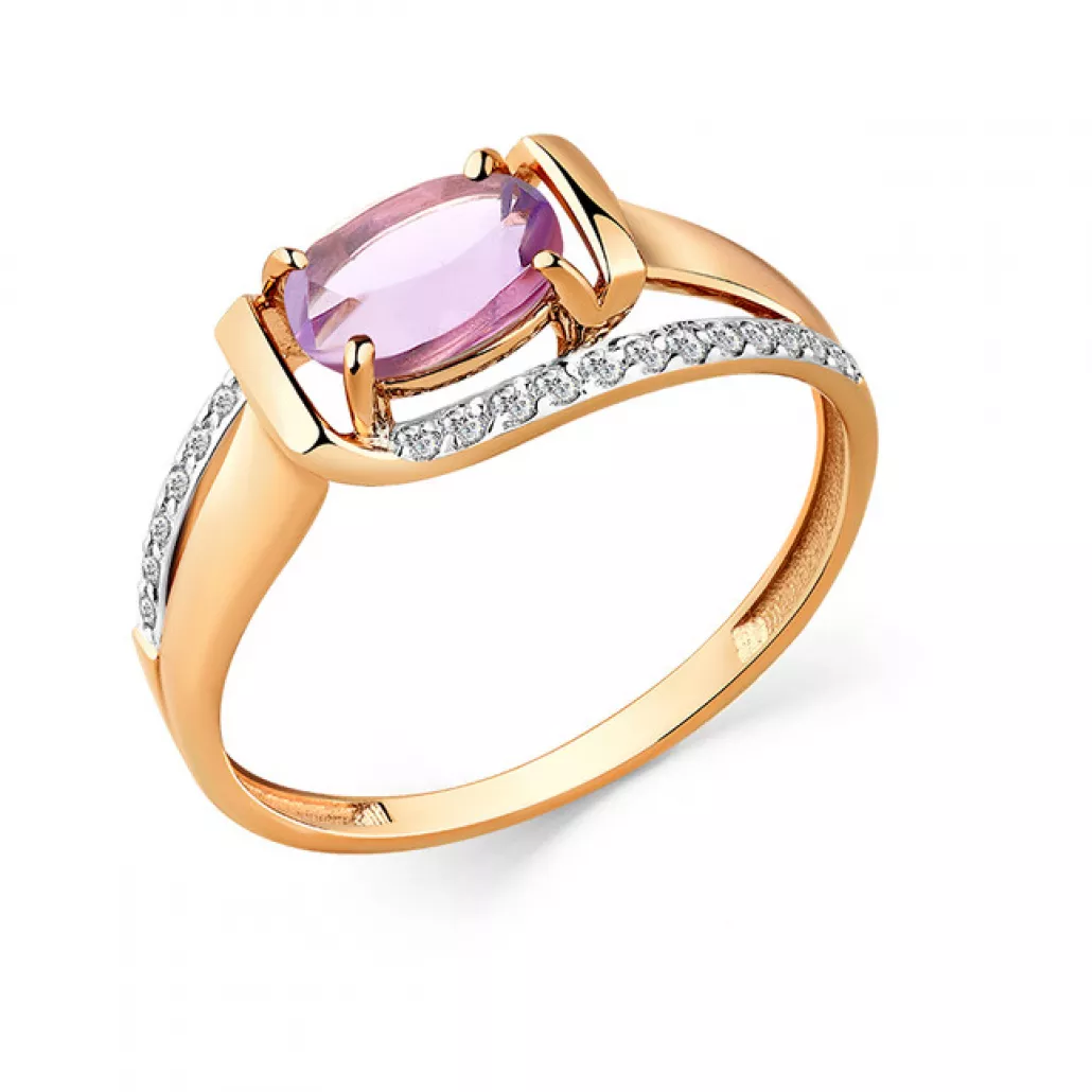 Золотое кольцо 585, женское, с аметистом и фианитом, размер 18 Артикул: 01-3-462-0201-011