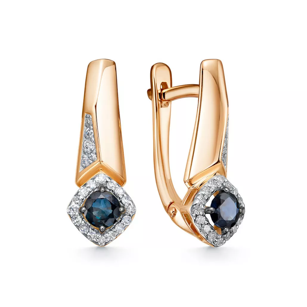 - Золотые серьги 585, женские, с бриллиантом и сапфиром
