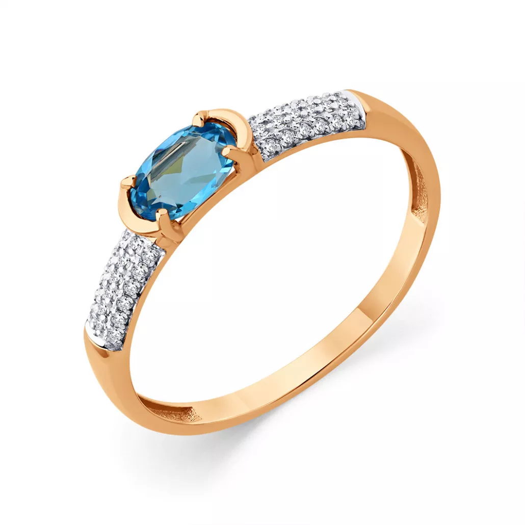 Золотое кольцо 585, женское, с топазом и фианитом, размер 16.5