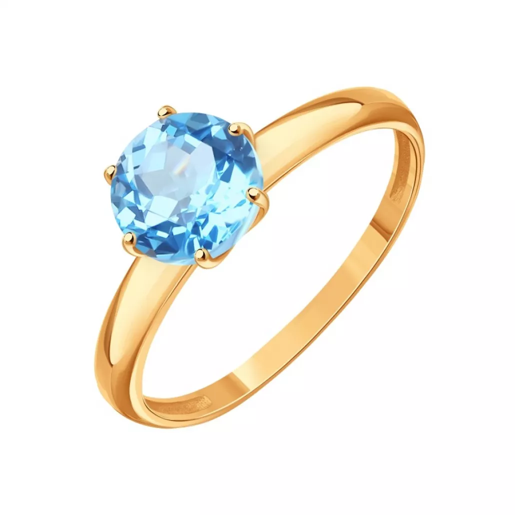Золотое кольцо 585, женское, с топазом, размер 17.5 Артикул: Т10101Б422