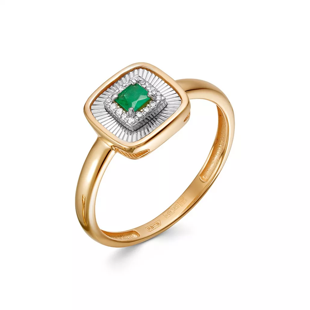Золотое кольцо 585, женское, с изумрудом и бриллиантом, размер 18.5 Артикул: 13180-159-14-00