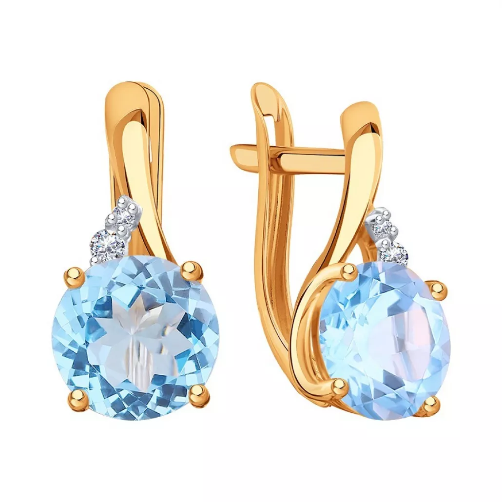Золотые серьги 585, женские, с топазом и фианитом Артикул: Т14302Е303