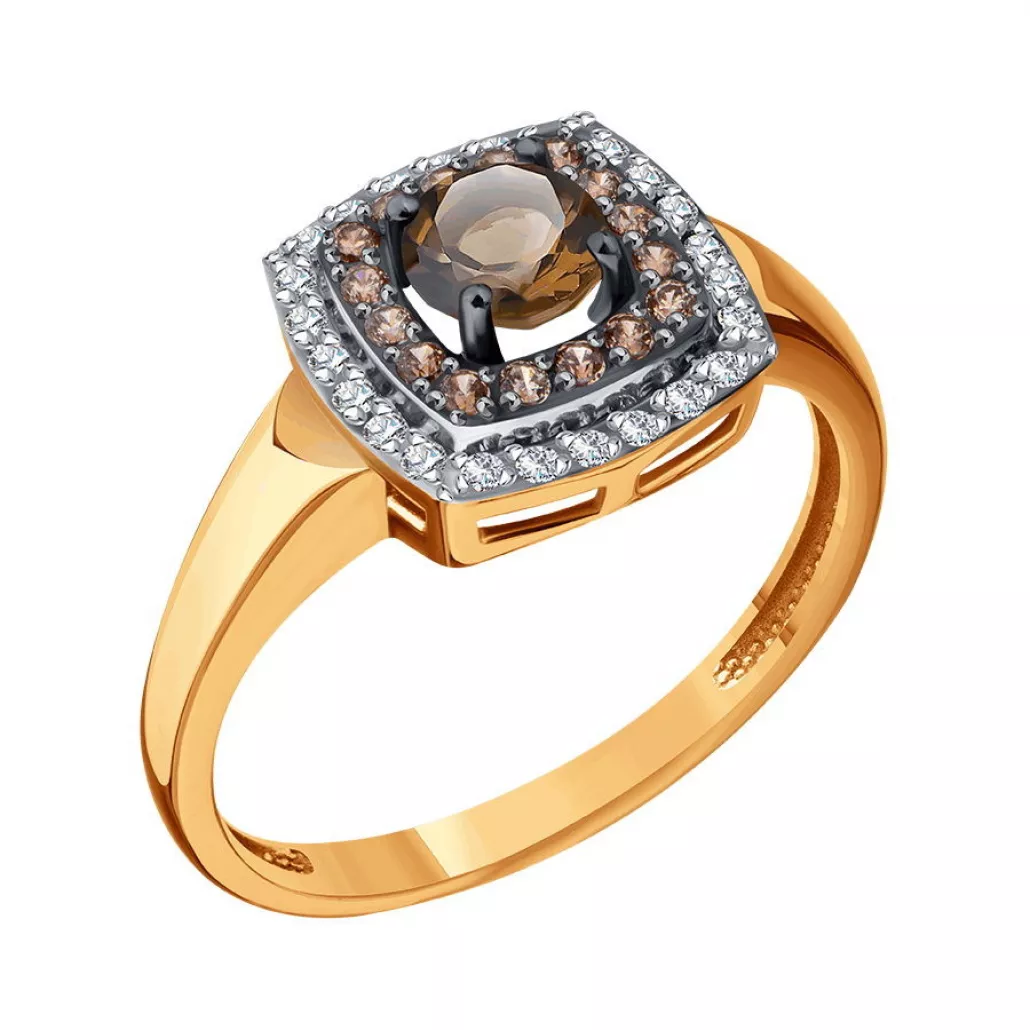 Золотое кольцо 585, женское, с раухтопазом и фианитом, размер 18 Артикул: Т14701Д697
