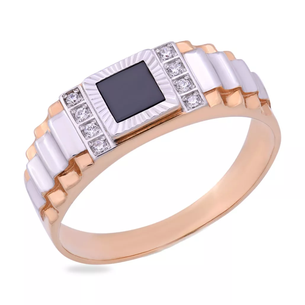 Кольцо-печатка с фианитом из золота Артикул: Т142642947
