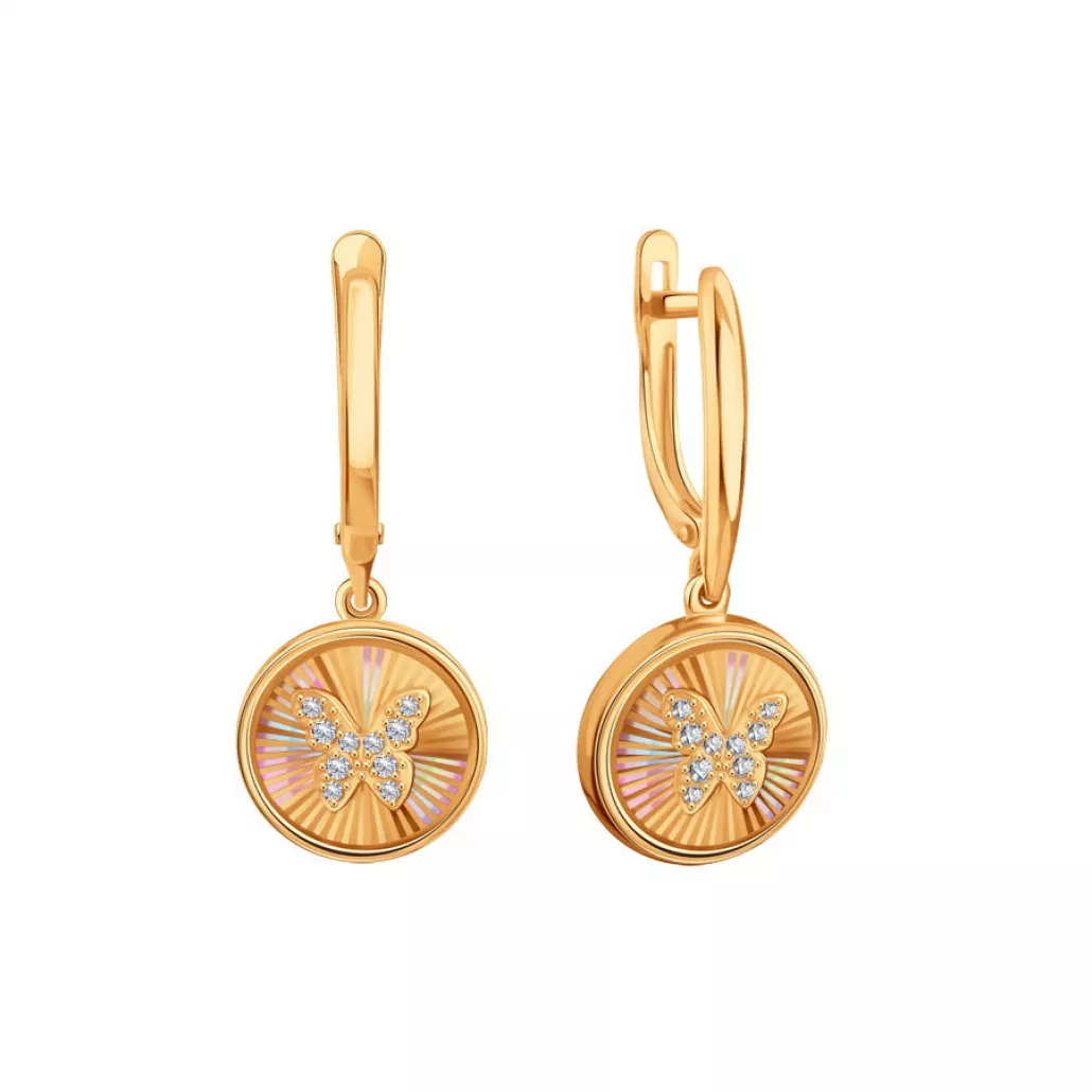 Золотые серьги 585, женские, с фианитом