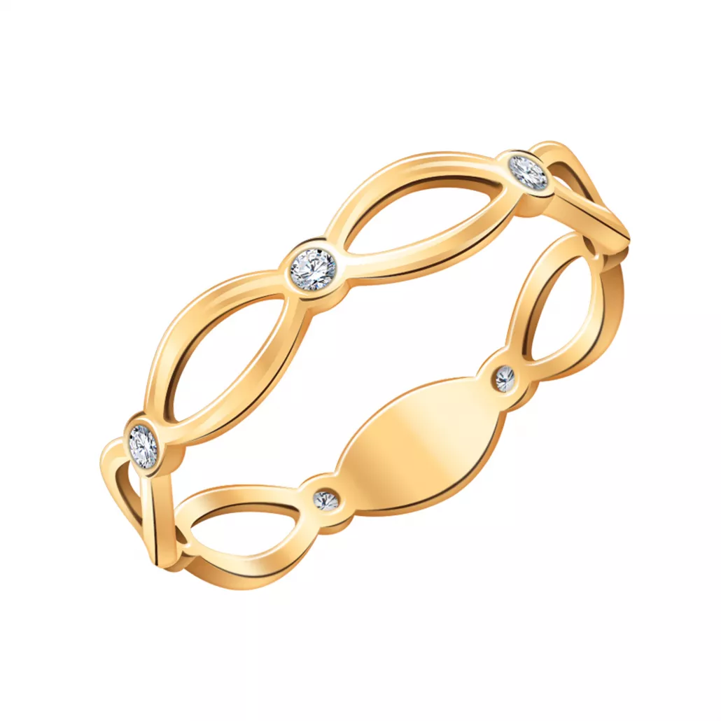 Золотое кольцо 585, женское, с фианитом, размер 17.5 Артикул: 10954