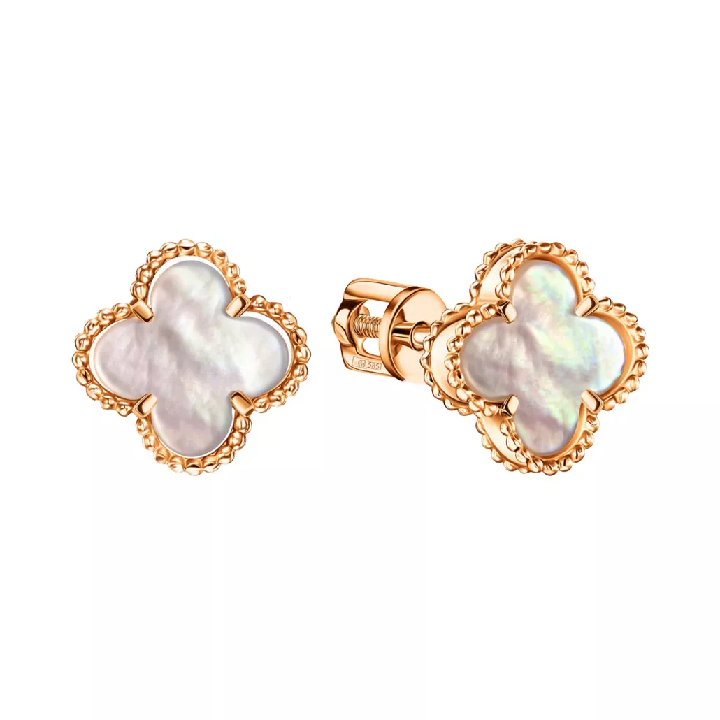 - Золотые серьги 585, женские, с перламутром