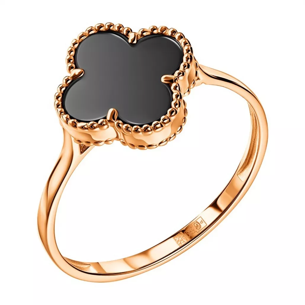 Золотое кольцо 585, женское, с ониксом, размер 18