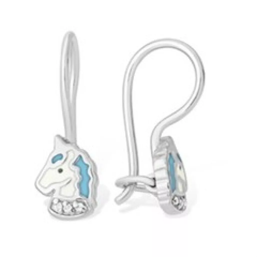 - Серебряные серьги 925, детские, с эмалью и фианитом