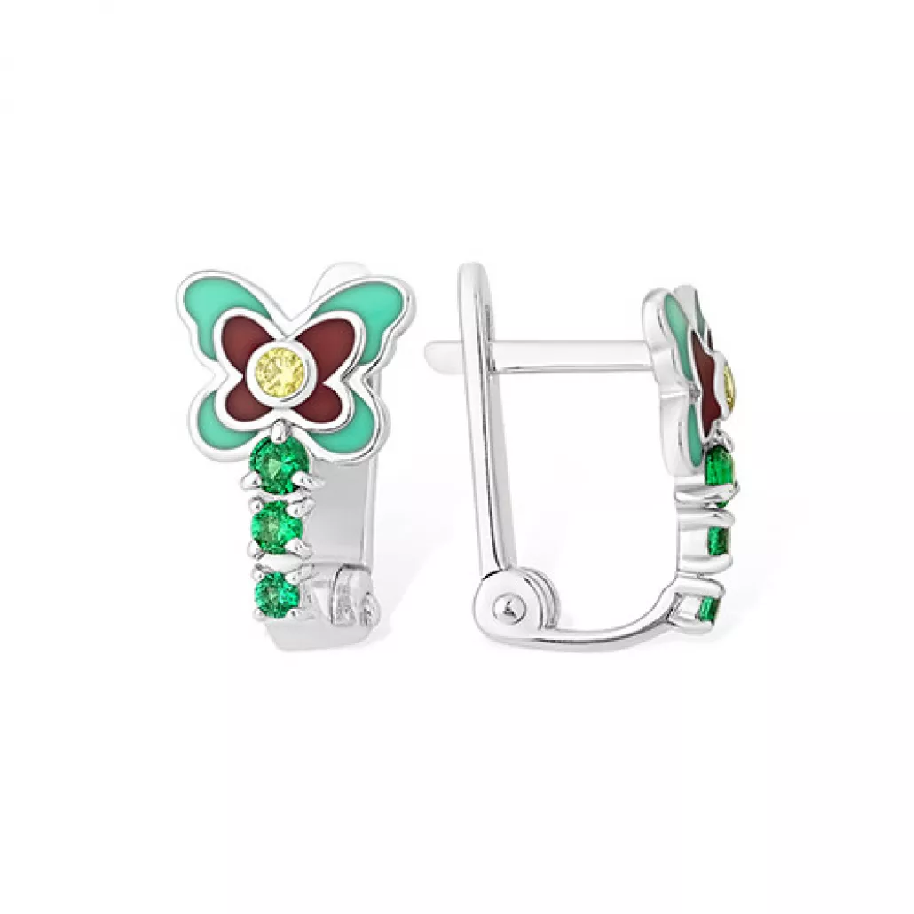 Серебряные серьги 925, женские, с эмалью и фианитом Артикул: 1210415665