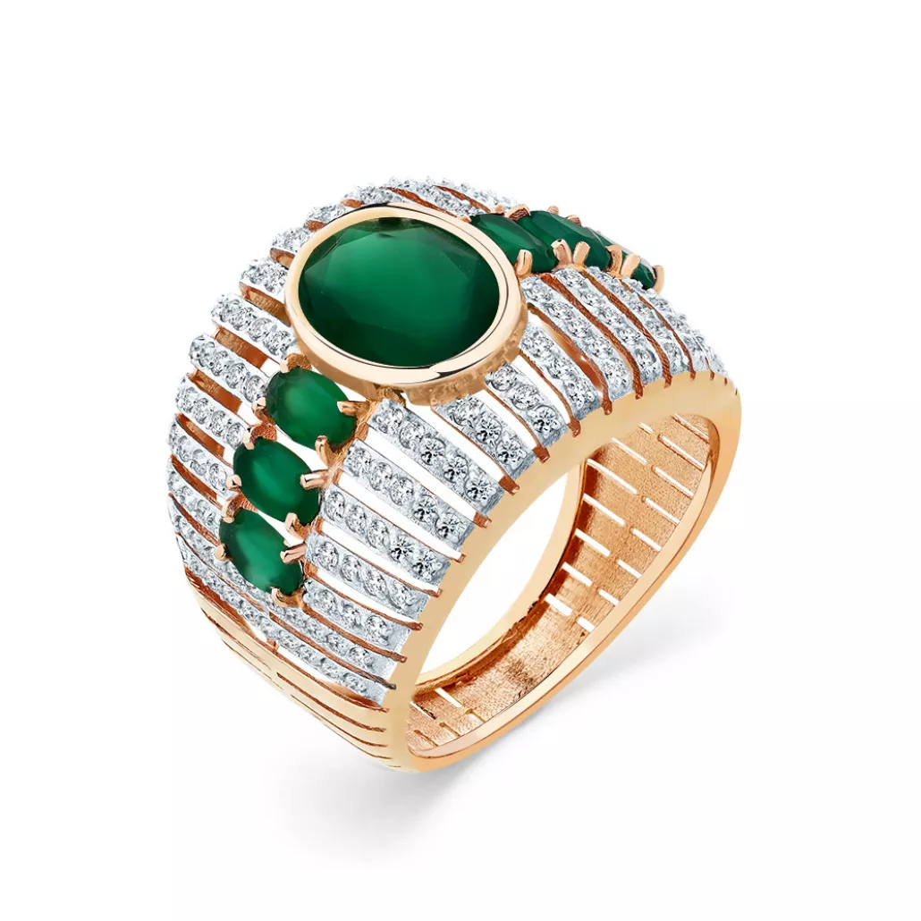 Золотое кольцо 585, женское, с агатом и фианитом, размер 19.5 Артикул: 01-3-569-0901-011