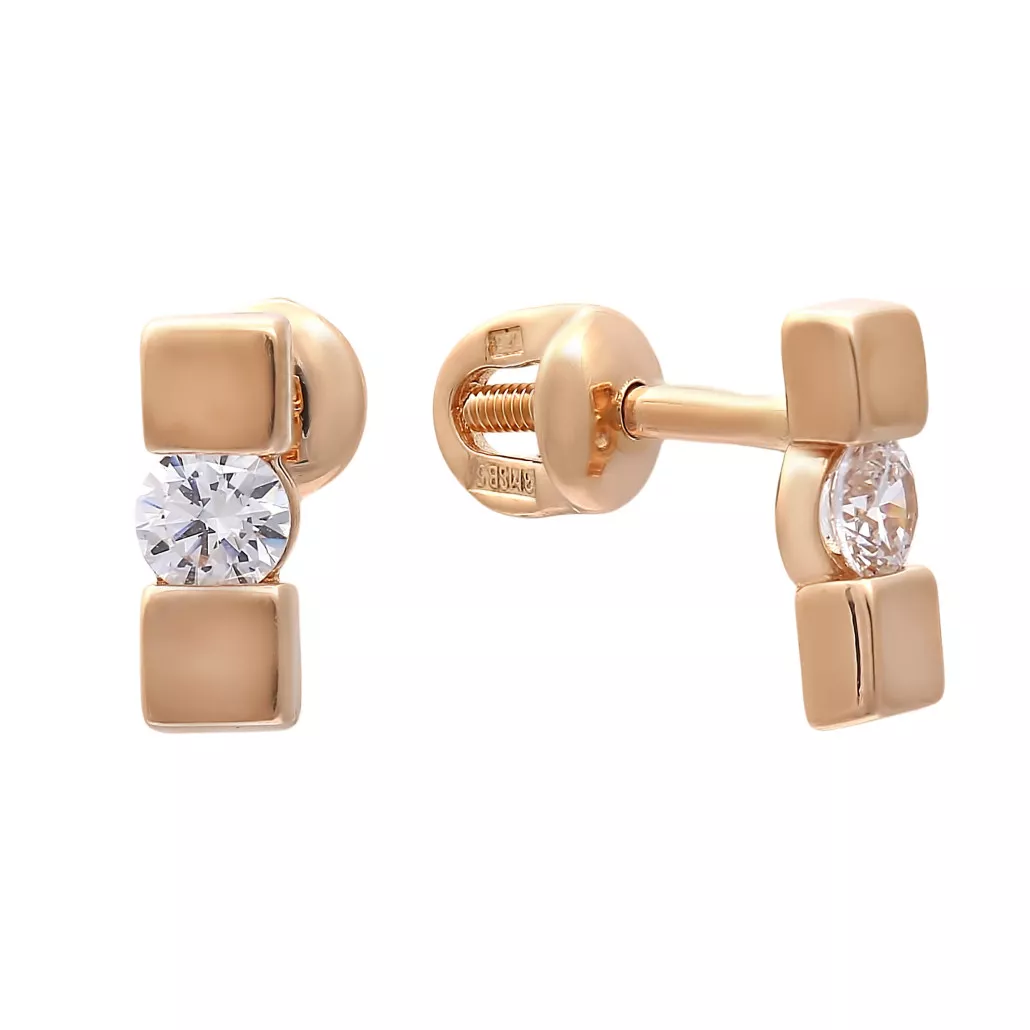 Пусеты с фианитом из золота